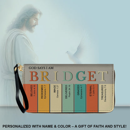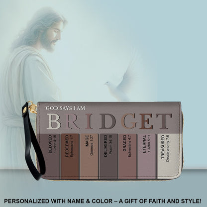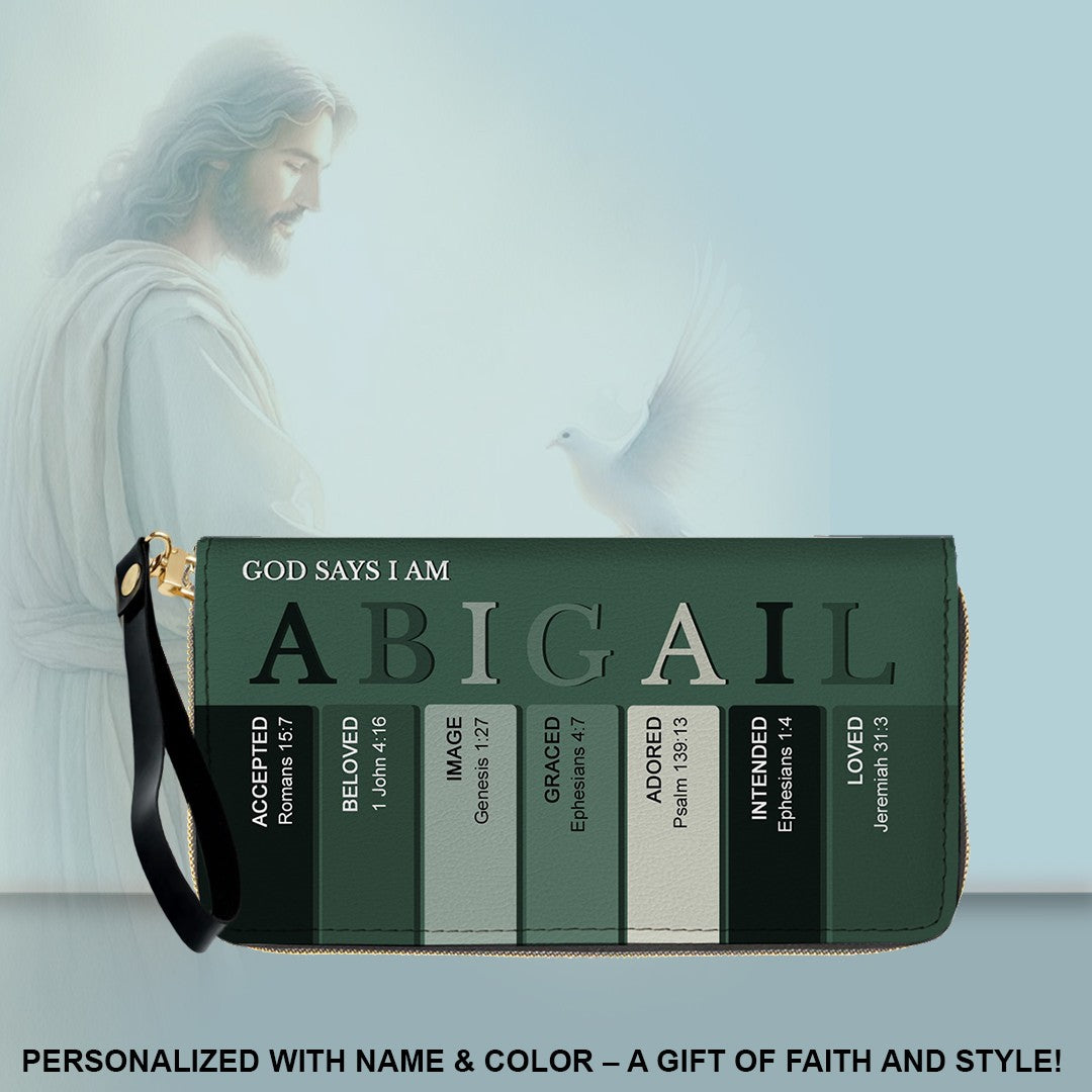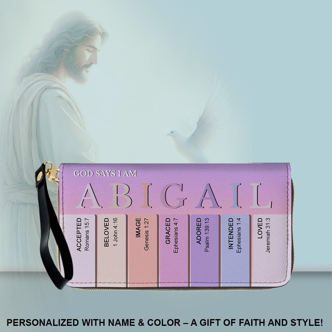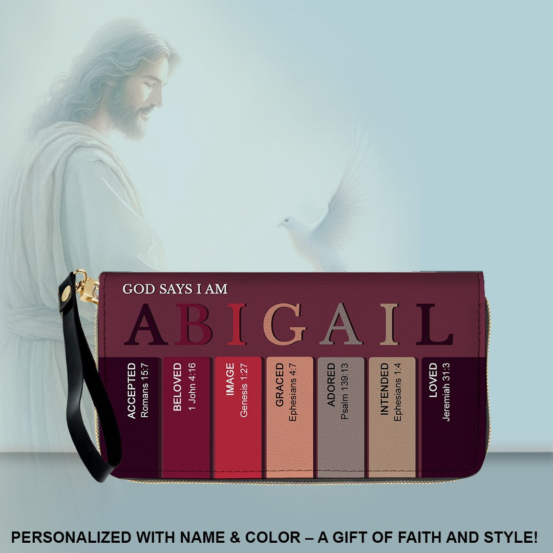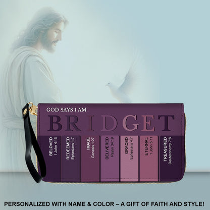 Introducing our Zippered Leather Clutch Purse for Women – Personalized Name – Christian Gifts For Women. This exquisite clutch purse is not just a stylish accessory; it's a testament to faith and a perfect companion for those who believe in God. With its sleek design and meaningful personalization option, this clutch purse is a unique addition to your collection.