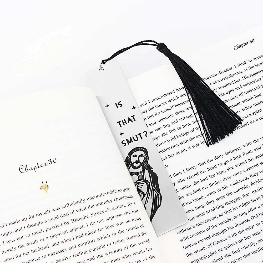 CHRISTIANARTBAG Funny Metal Bookmark With Tassel Book Lover Humor Peeking Jesus Book Marker - Is that Smut? Reader Birthday Gift