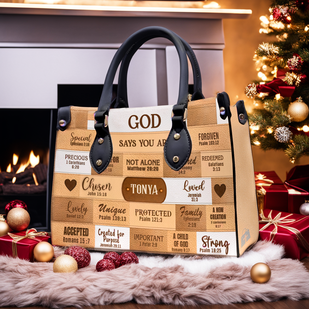 Christianartbag Handbags, God Says I Am Leather Handbag Beige, Personalized Bags, Gifts for Women, Christmas Gift, CABLTB01240923.