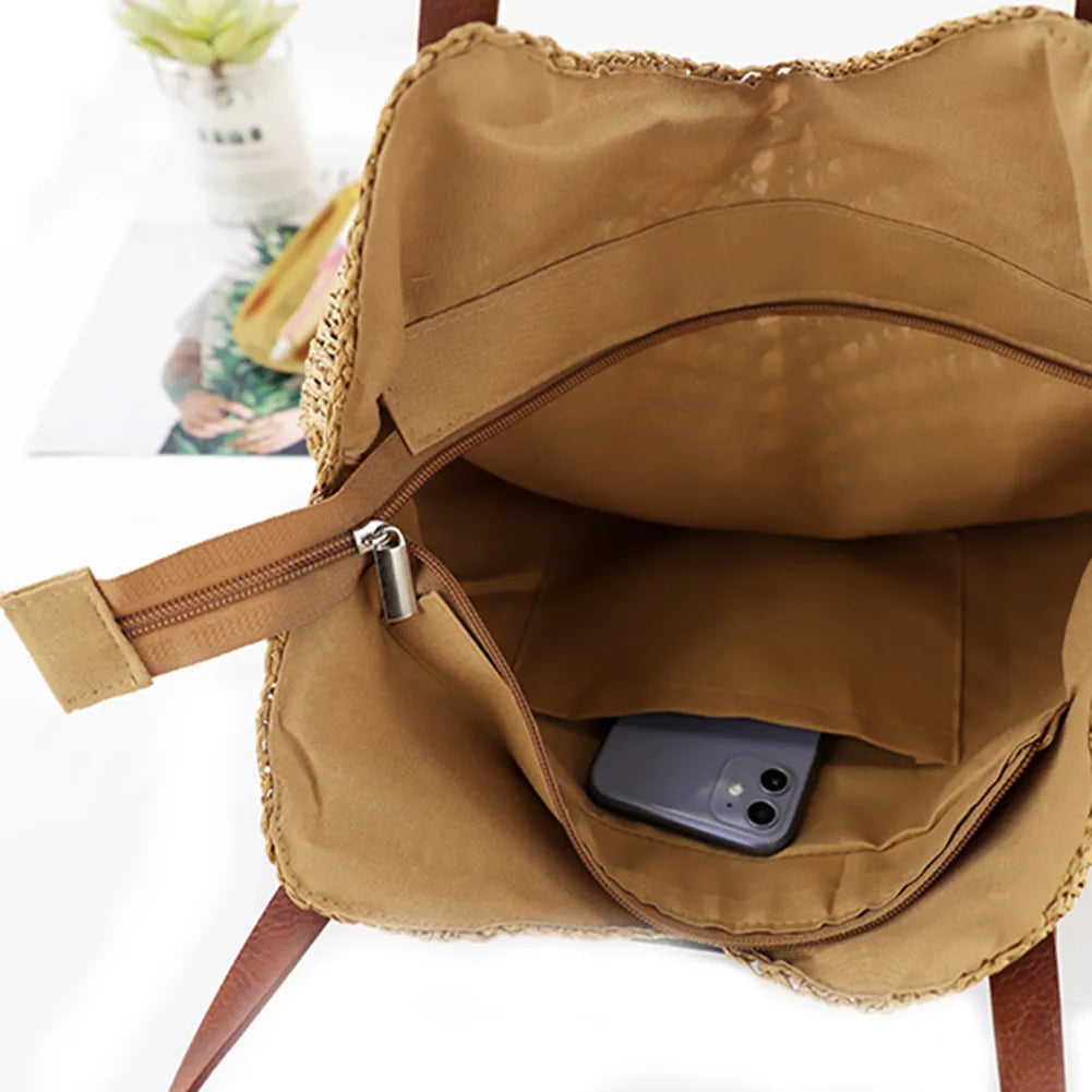 Christianartbag Handmade Bag, Summer & Autumn Straw Bags for Women Straw Shoulder Bags Rattan Woven Top Handle Bag Hollow Raffia Crochet Beach Bag Casual, CABHMB01141023.