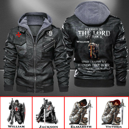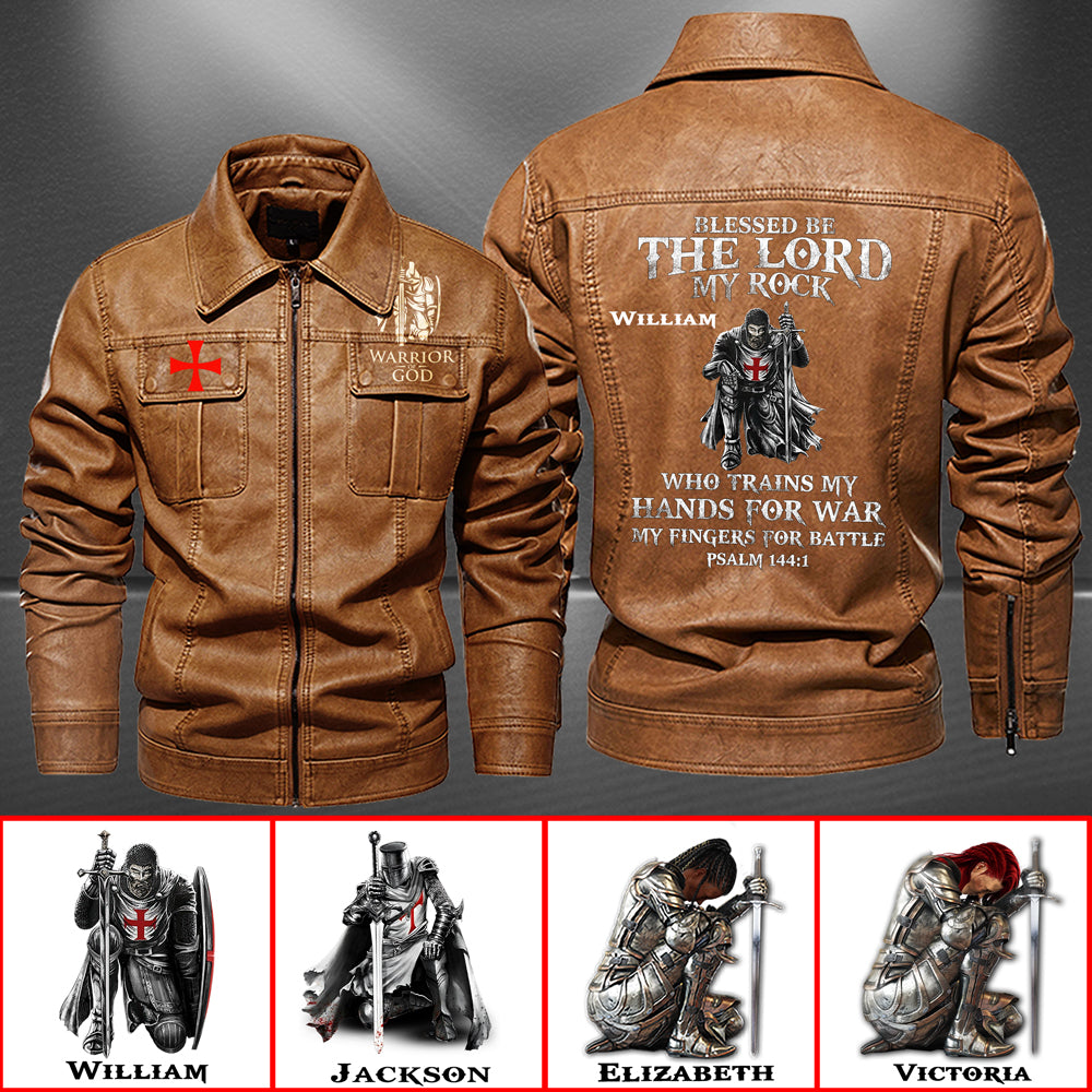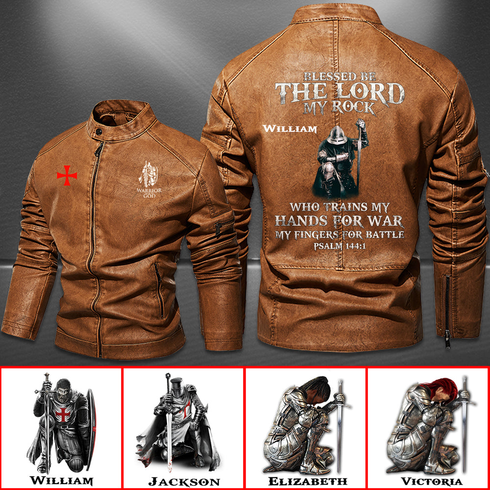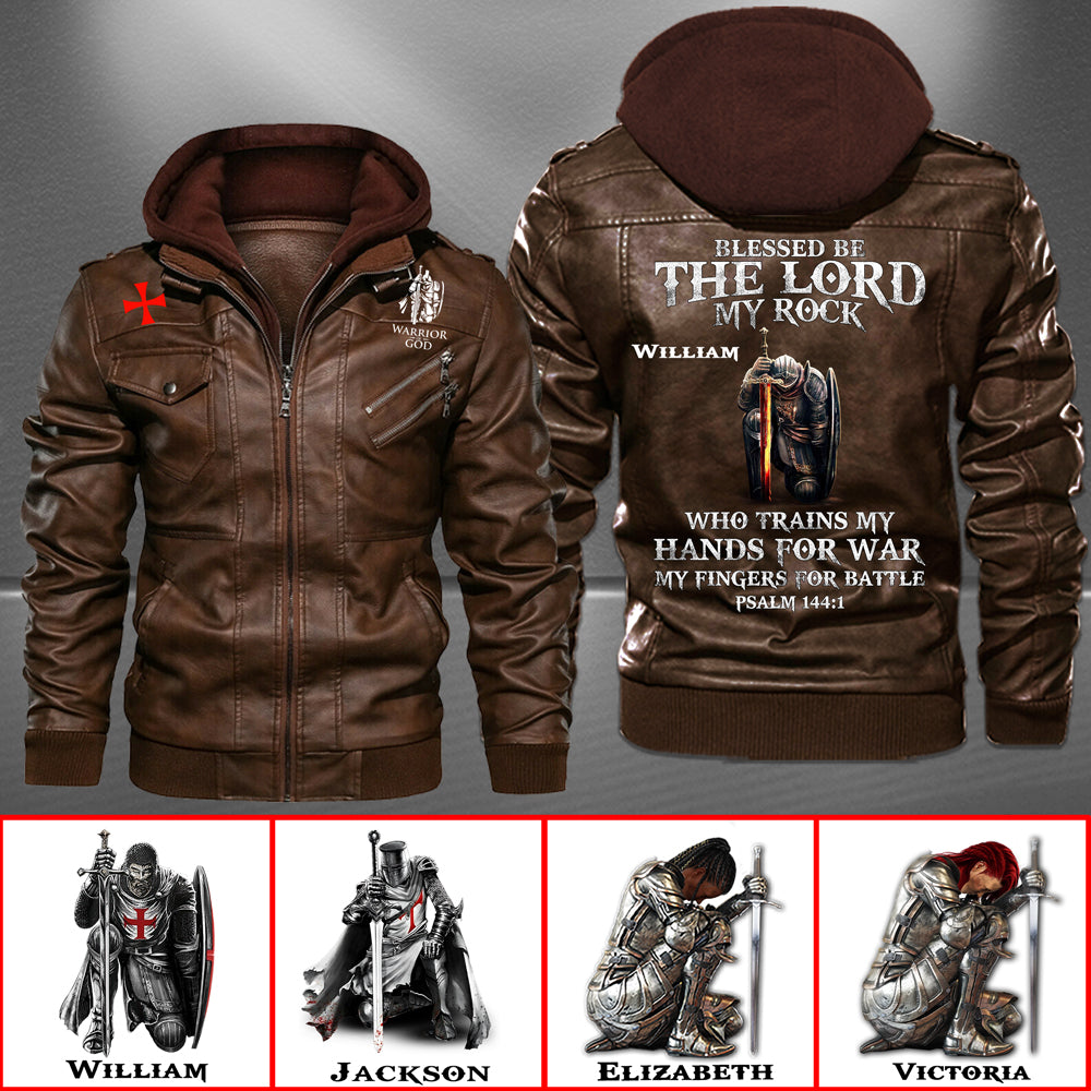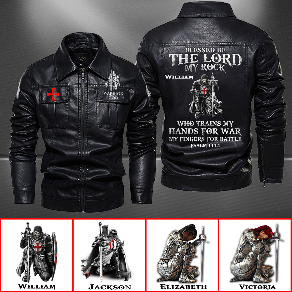Christianartbag Leather Jacket, Blessed Be The Lord My Rock PSALM 144:1 Personalized Leather Jacket, Warm Jacket, Winter Outer Wear, Gift for Him, CABJKL03061123.