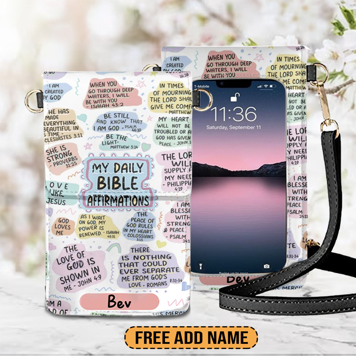 Christianartbag Phone Bag, Bible Daily Affirmations Personalized Phone Bag, Personalized Phone Bag, Leather Phone Bags, Phone Bags Crossbody, CABPB01210823.