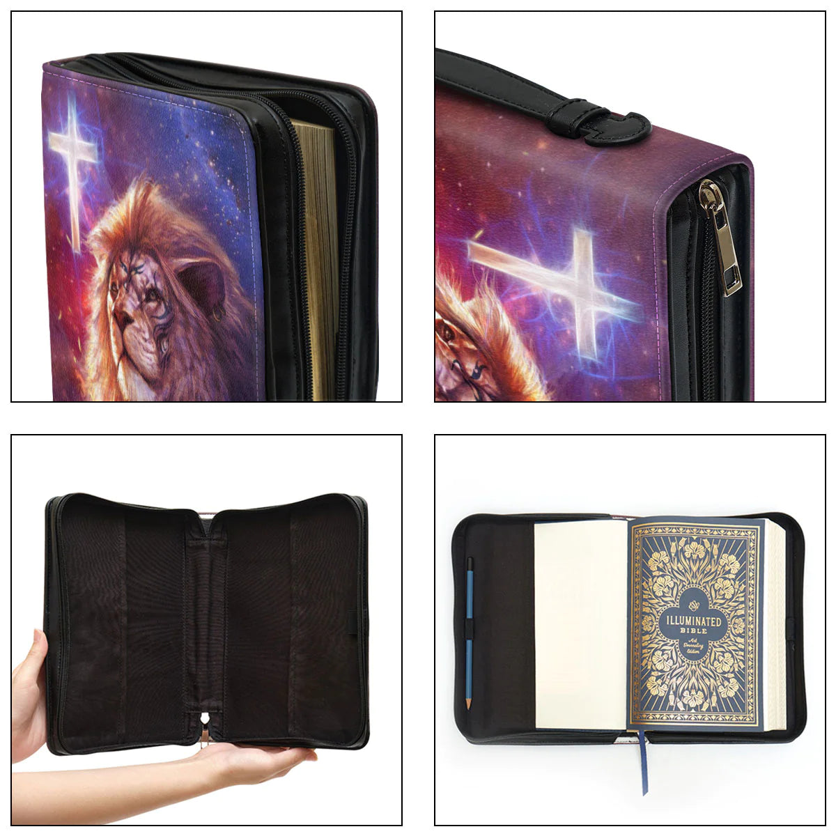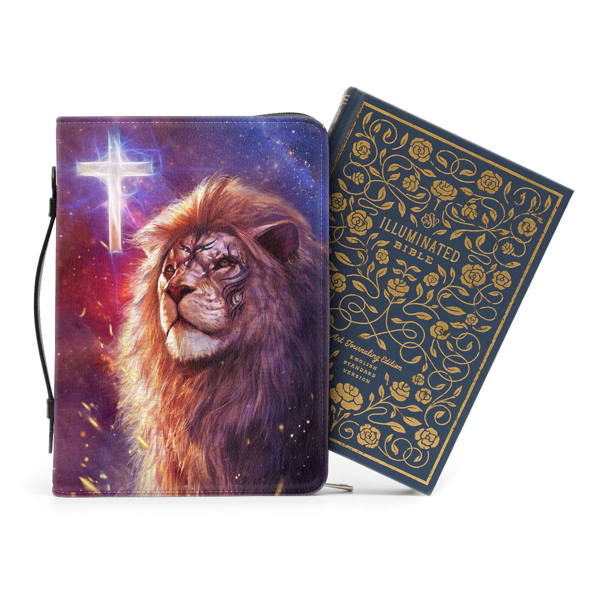 Featuring a striking lion's face and a powerful Scripture from Joshua 1:9, your cover boldly reminds you to be strong and courageous, free from fear, for the Lord is always with you. This heat-debossed design adds an elegant and inspirational touch.