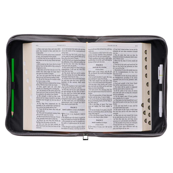 Our Bible cover is designed for convenience. It boasts a sturdy handle, comfortable to hold and securely stitched to the spine. You can also slip it into a larger bag, making it ideal for church, Bible study, and travel.