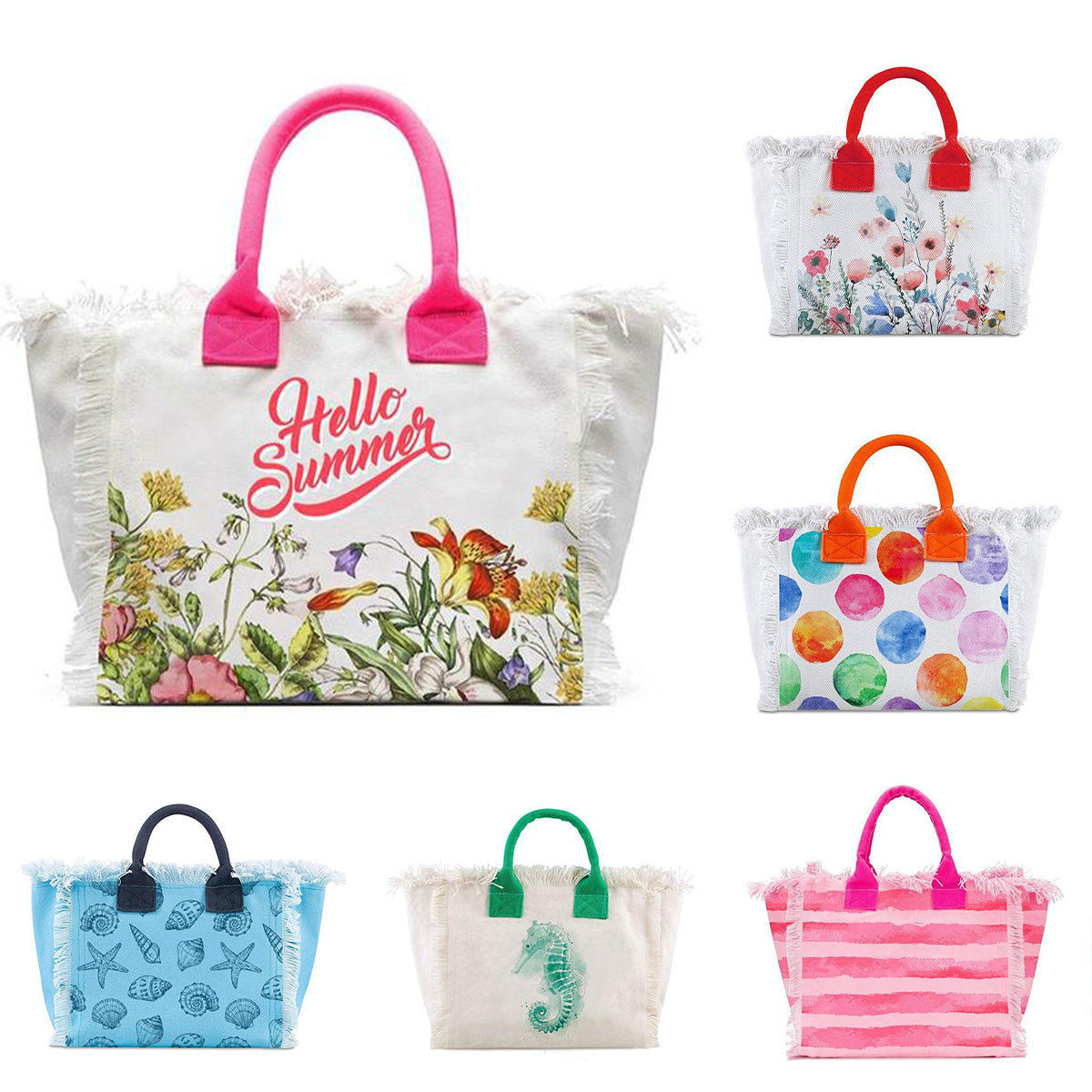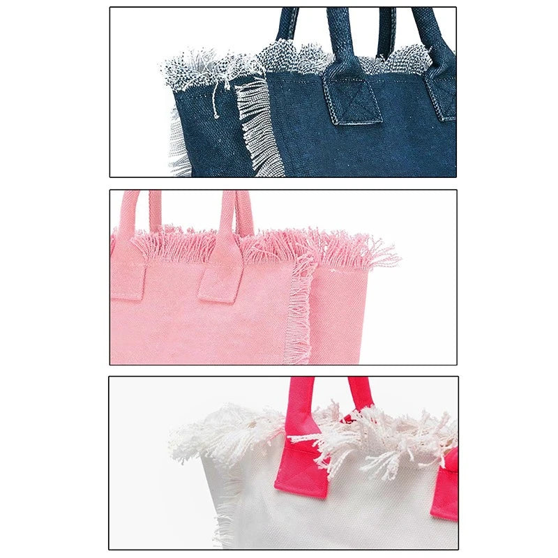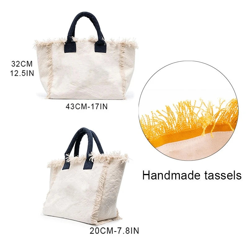 HPSP Handmade Bags, Printed Women's HandBag Large Capacity Tassel Design Simple Weekend Travel Bag Bride Gift Summer Beach Bag Canvas Tote.