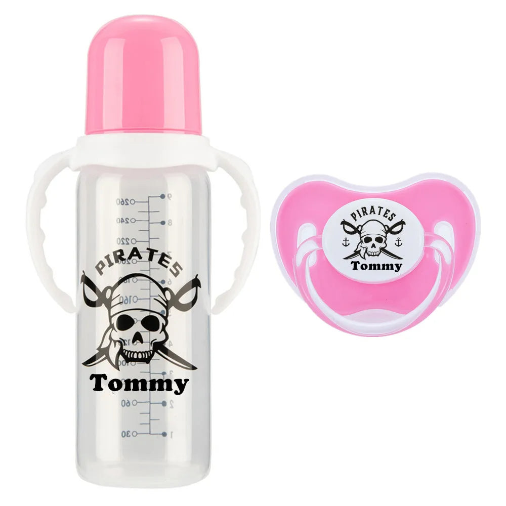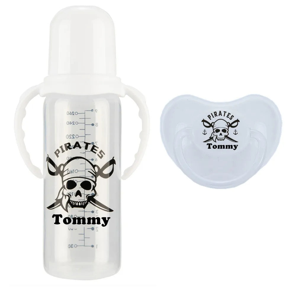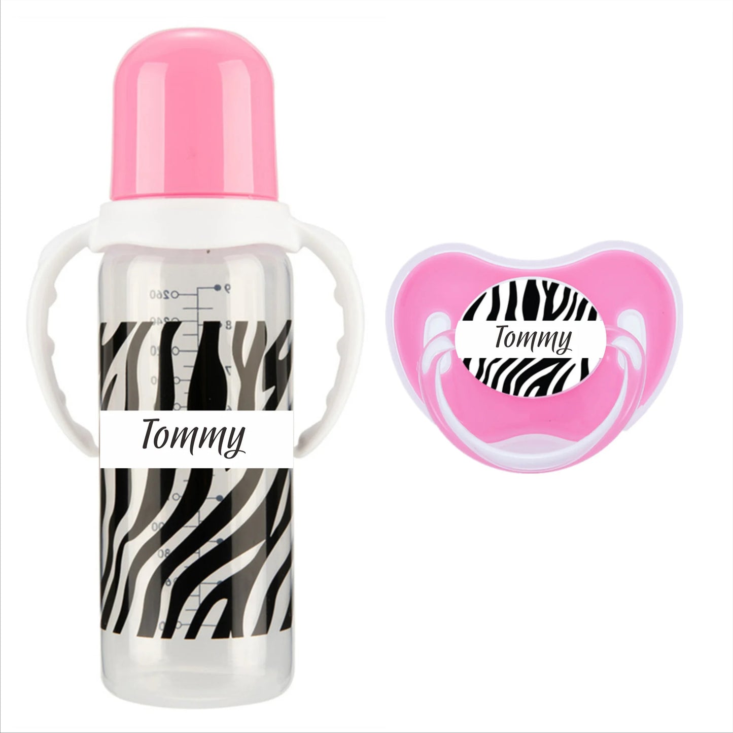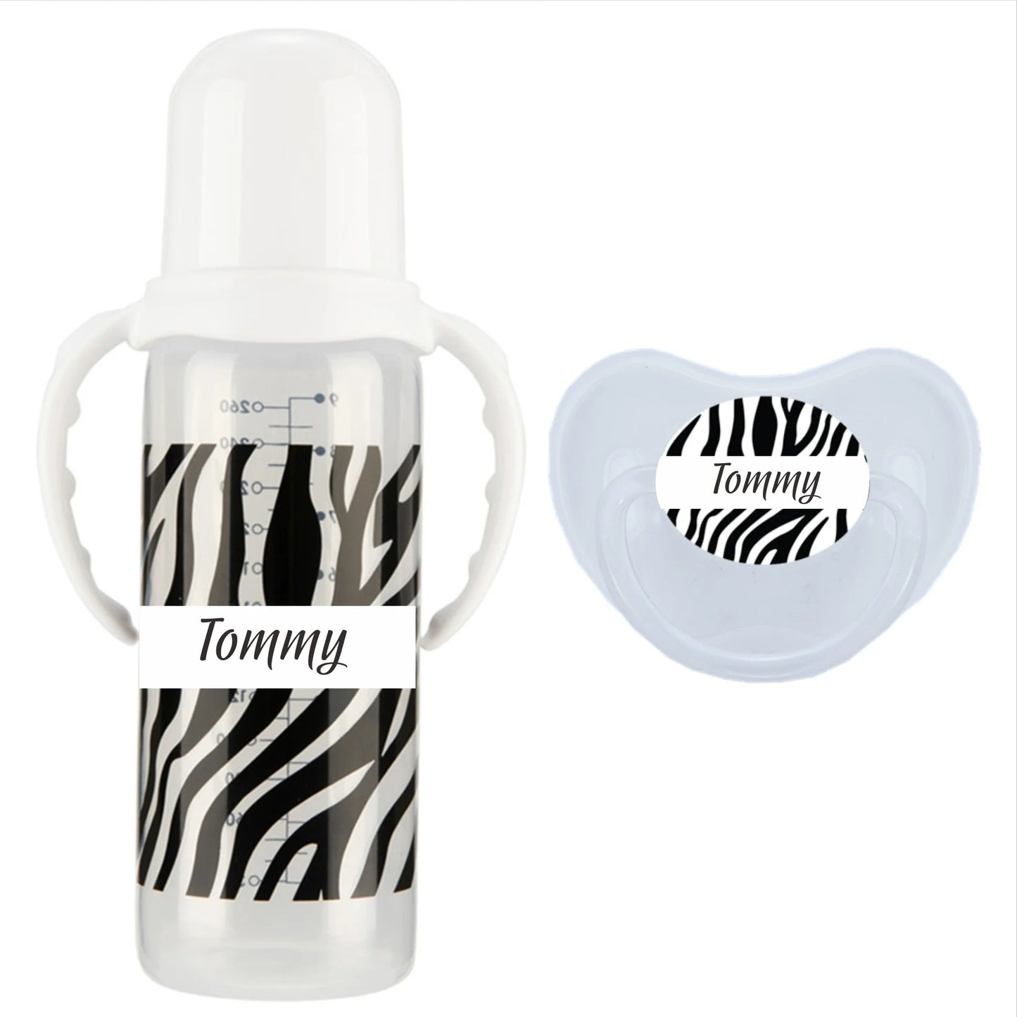 Personalized Baby Bottle – Custom Name Zebra Baby Feeding Bottle & Pacifier Set | BPA-Free | 260ml