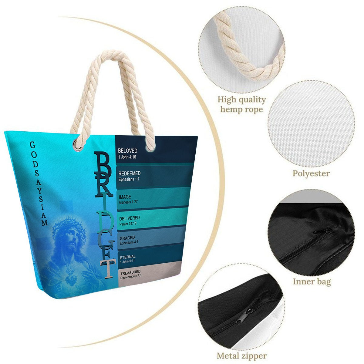 Personalized Beach Bag – Custom Christian Scripture Tote with Name for Summer & Travel
