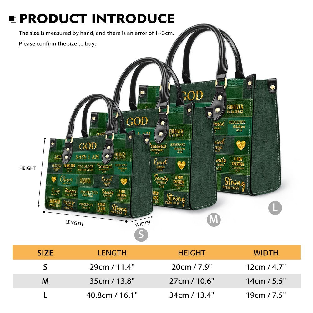 Personalized Christian Leather Handbag – “God Says I Am” Scripture Tote Bag for Women | Custom Name & Color | CHRISTIANARTBAG