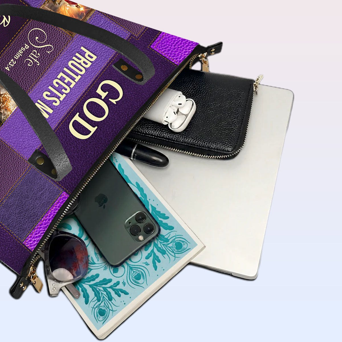 Personalized Christian Leather TOTE Bag Luxury – GOD PROTECTS ME | CHRISTIANARTBAG Leather TOTE Bag