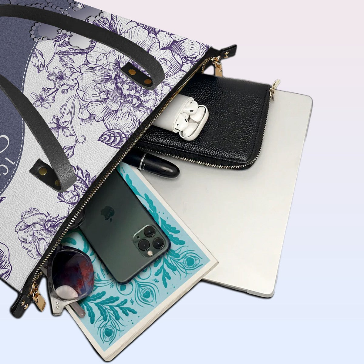 Personalized Christian Leather Tote Bag Luxury with Bible Verses – Custom Name Handbag by CHRISTIANARTBAG