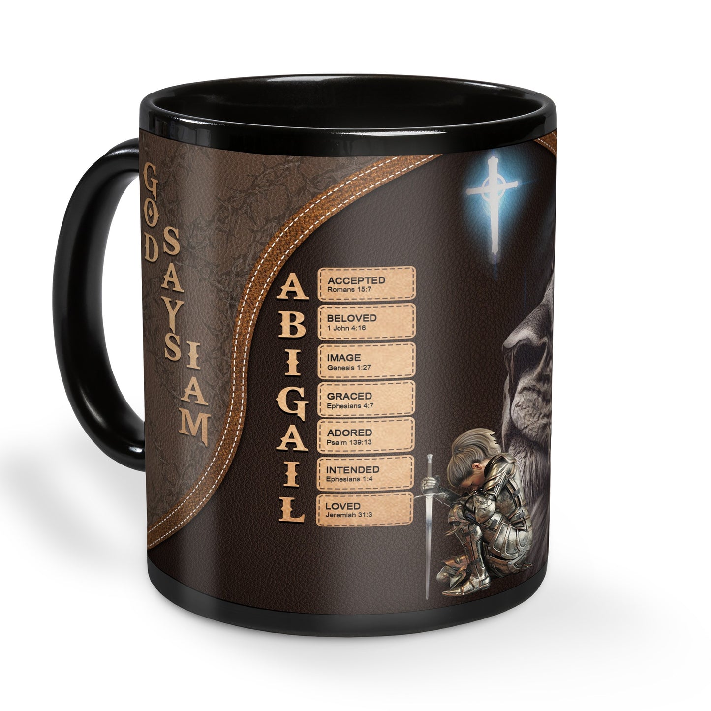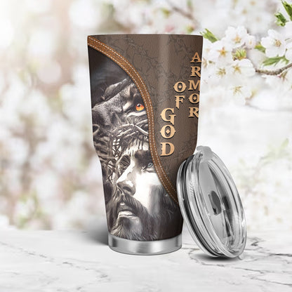 🛡️ Armor of God Theme – Featuring bold Christian imagery including a praying warrior, lion, and Jesus wearing a crown of thorns, this tumbler or mug empowers you to carry your faith wherever you go.