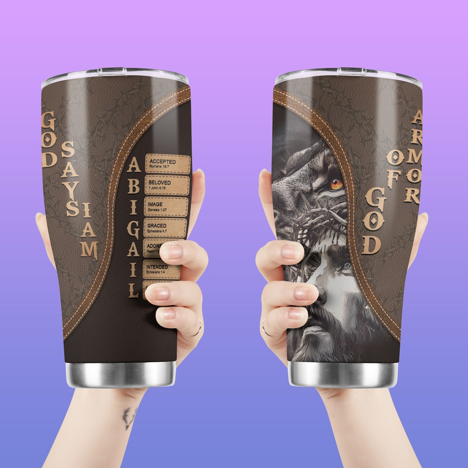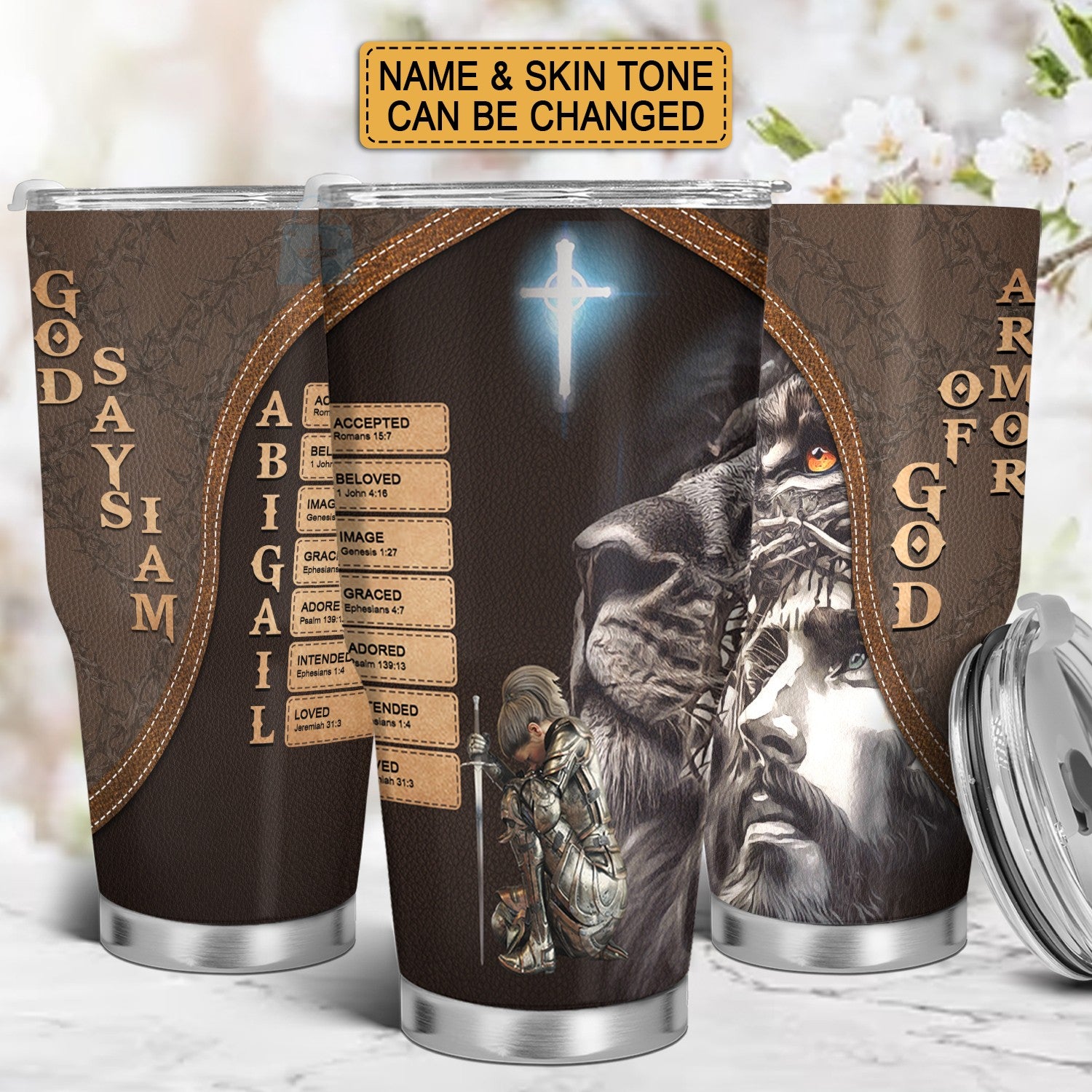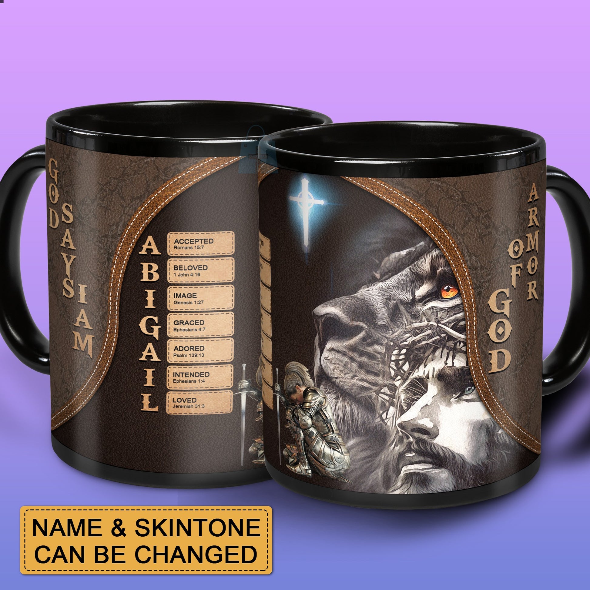 Personalized Christian Mug or Tumbler – Custom Name with Bible Verses | Changeable Skin Tone | Armor of God Gift