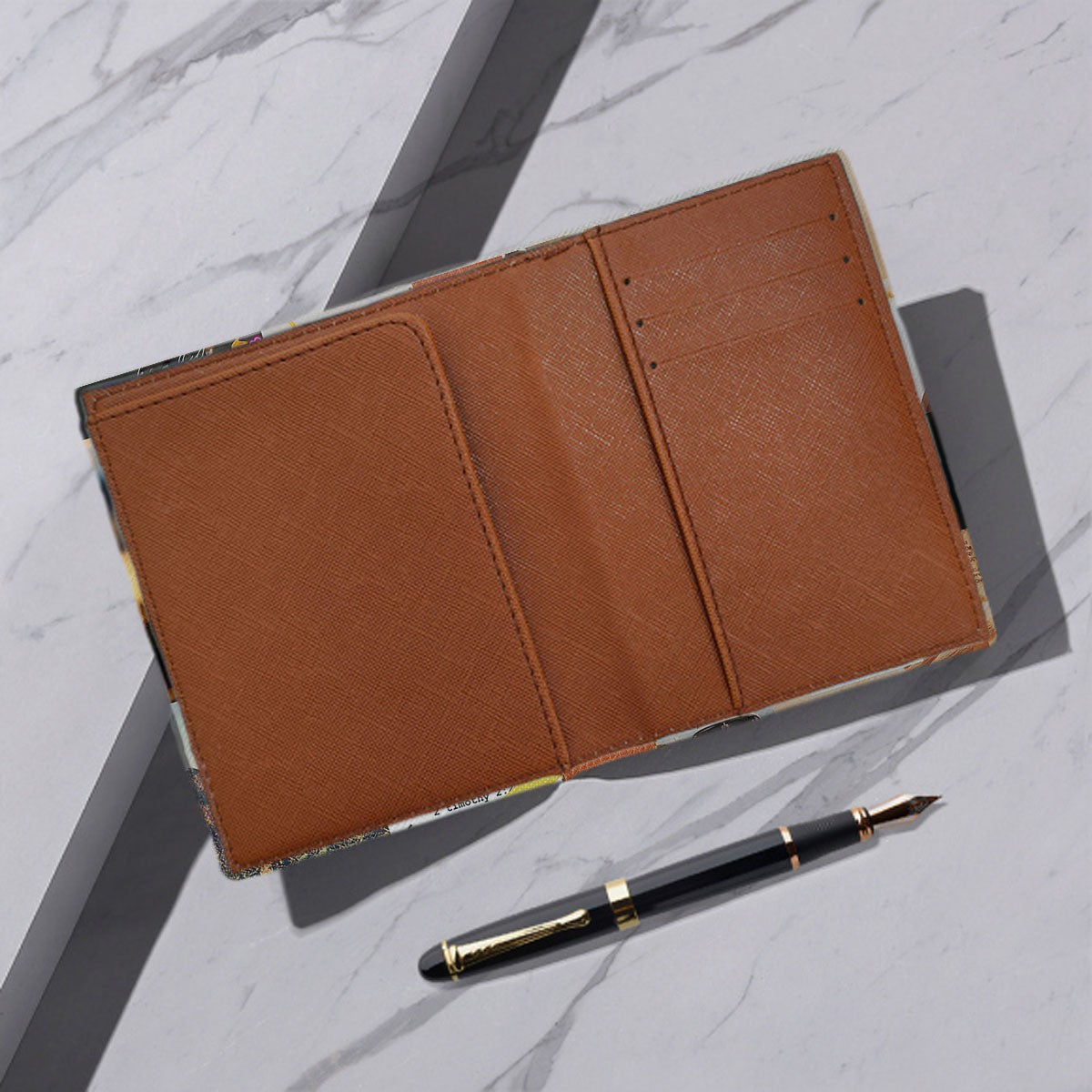 Your cover's dimensions represent its exterior size. To guarantee a perfect fit, measure your Bible accurately and consult our sizing chart. Our covers provide extra room for comfort. Inside, two pen loops keep your writing instruments secure. The interior sleeves tuck into your Bible's front and back covers, ensuring organization.