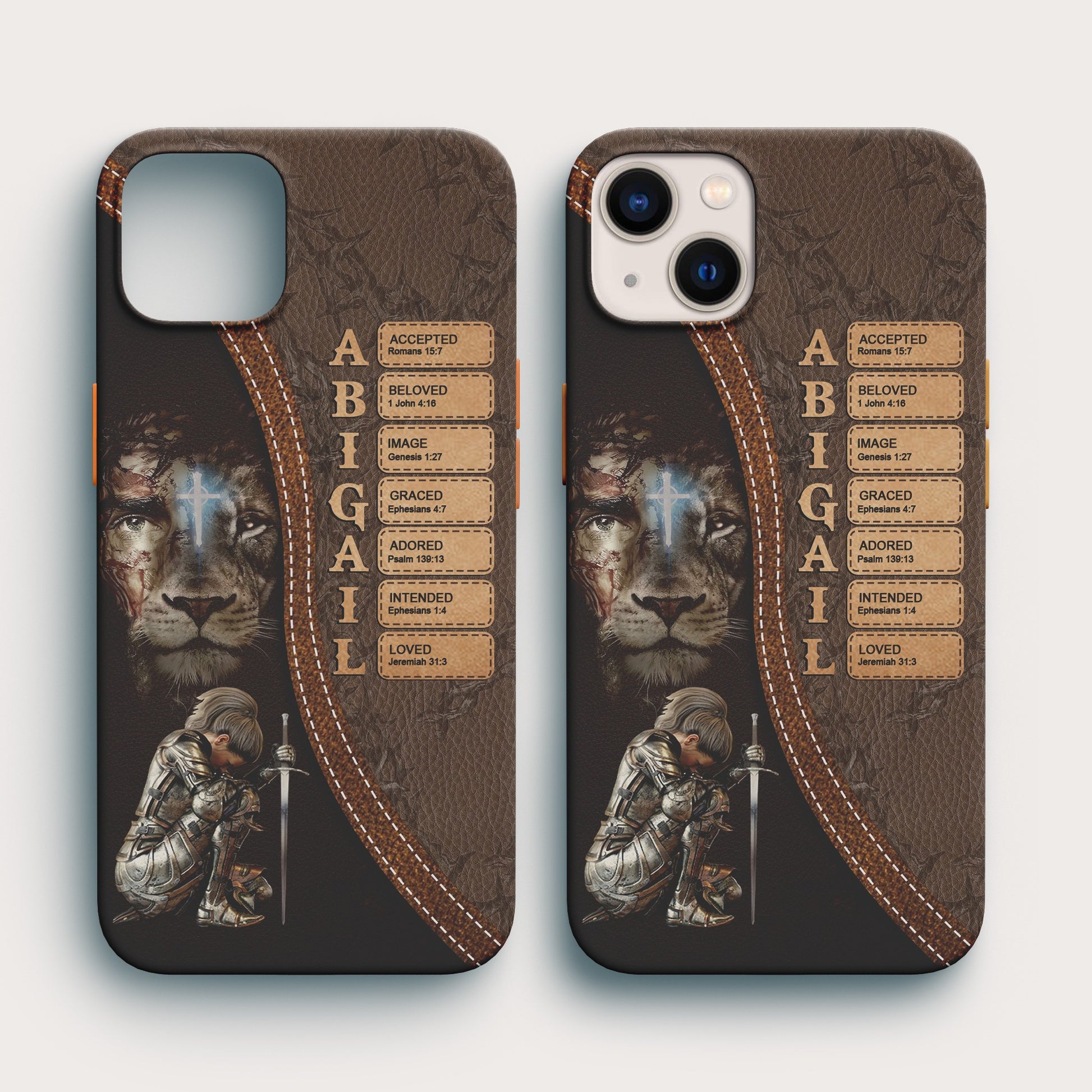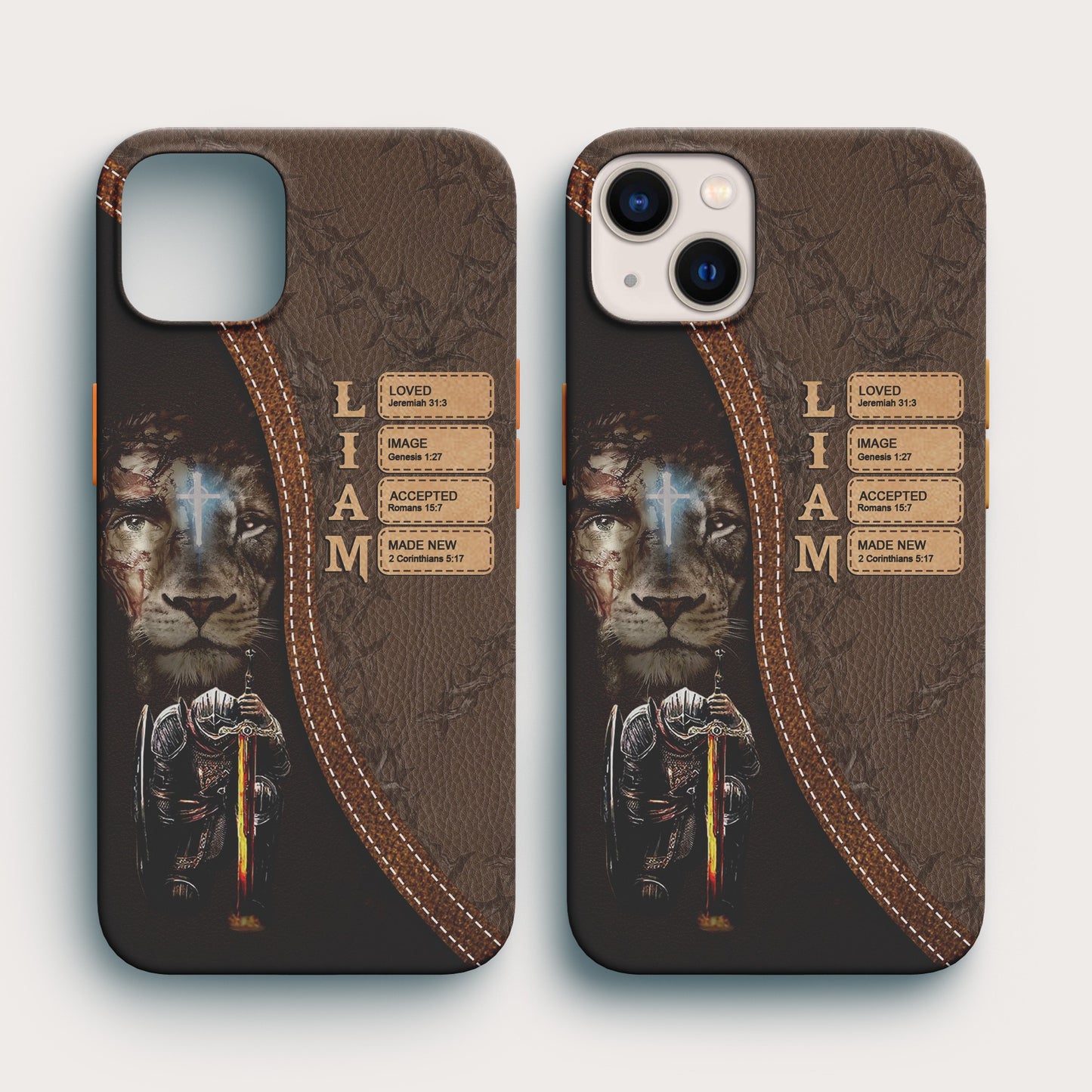 Personalized Christian Phone Case | Custom Name & Skin Tone | Lion & Armor of God Design with Bible Verse Initials