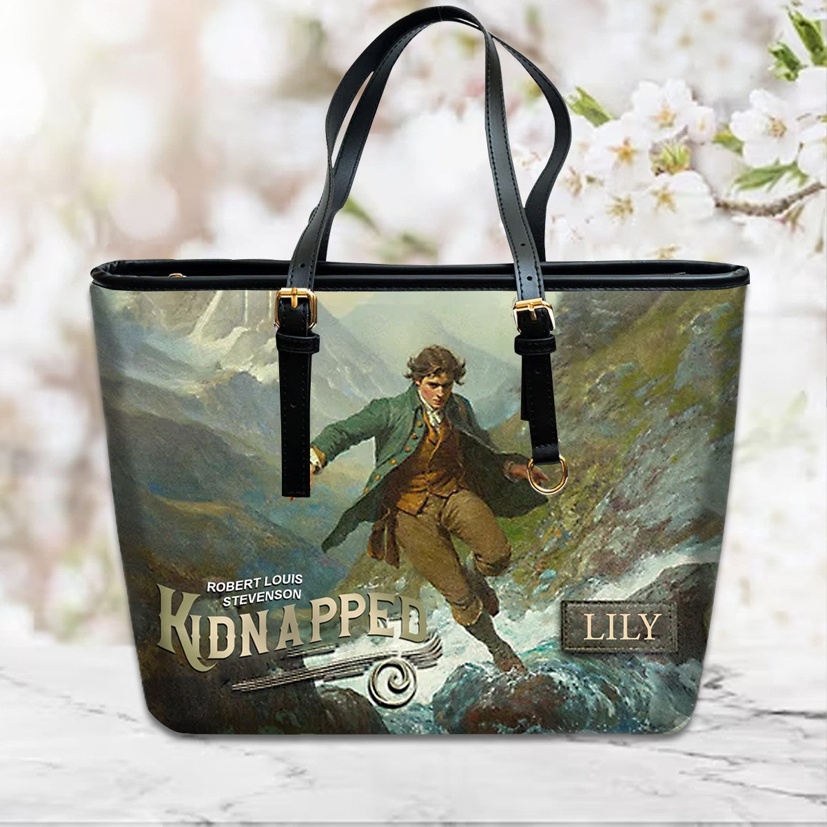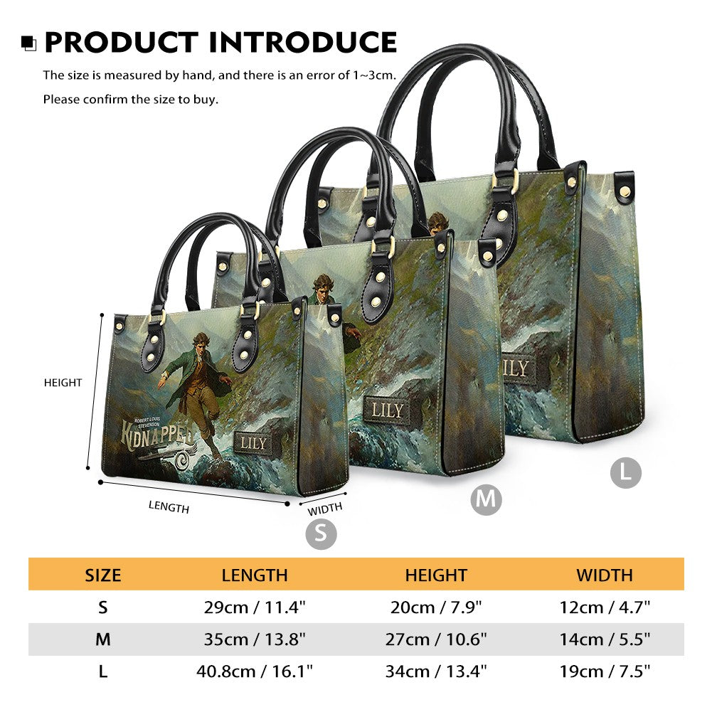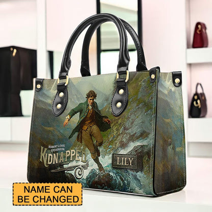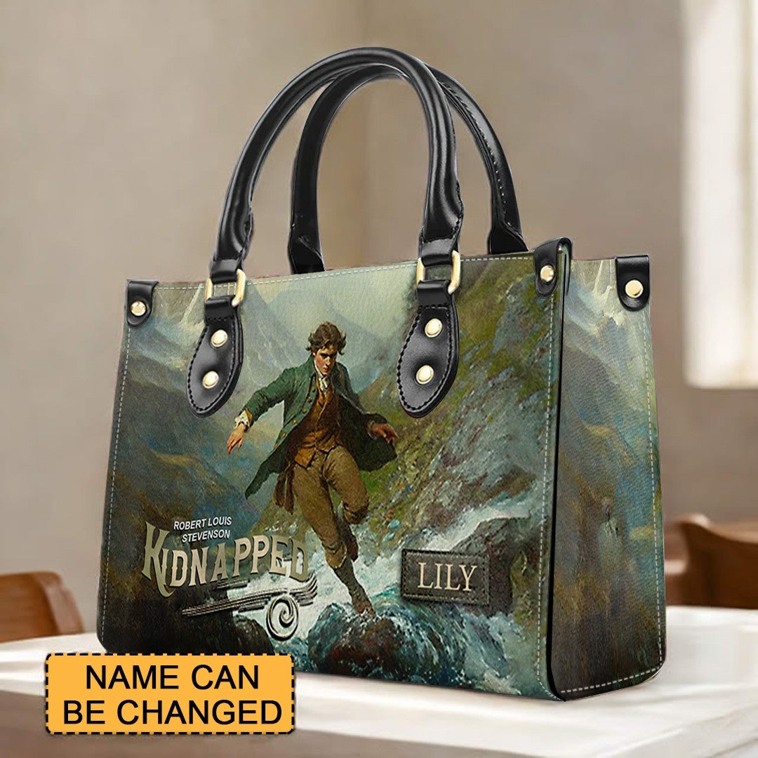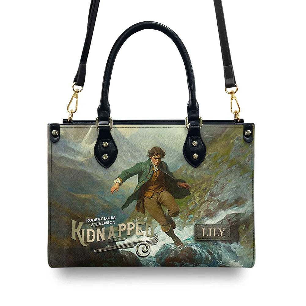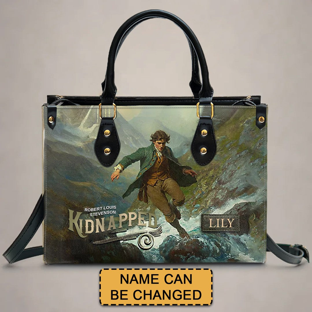 Personalized Leather Handbag – "Kidnapped" Book Cover Design | Custom Name | ChristianArtBag™