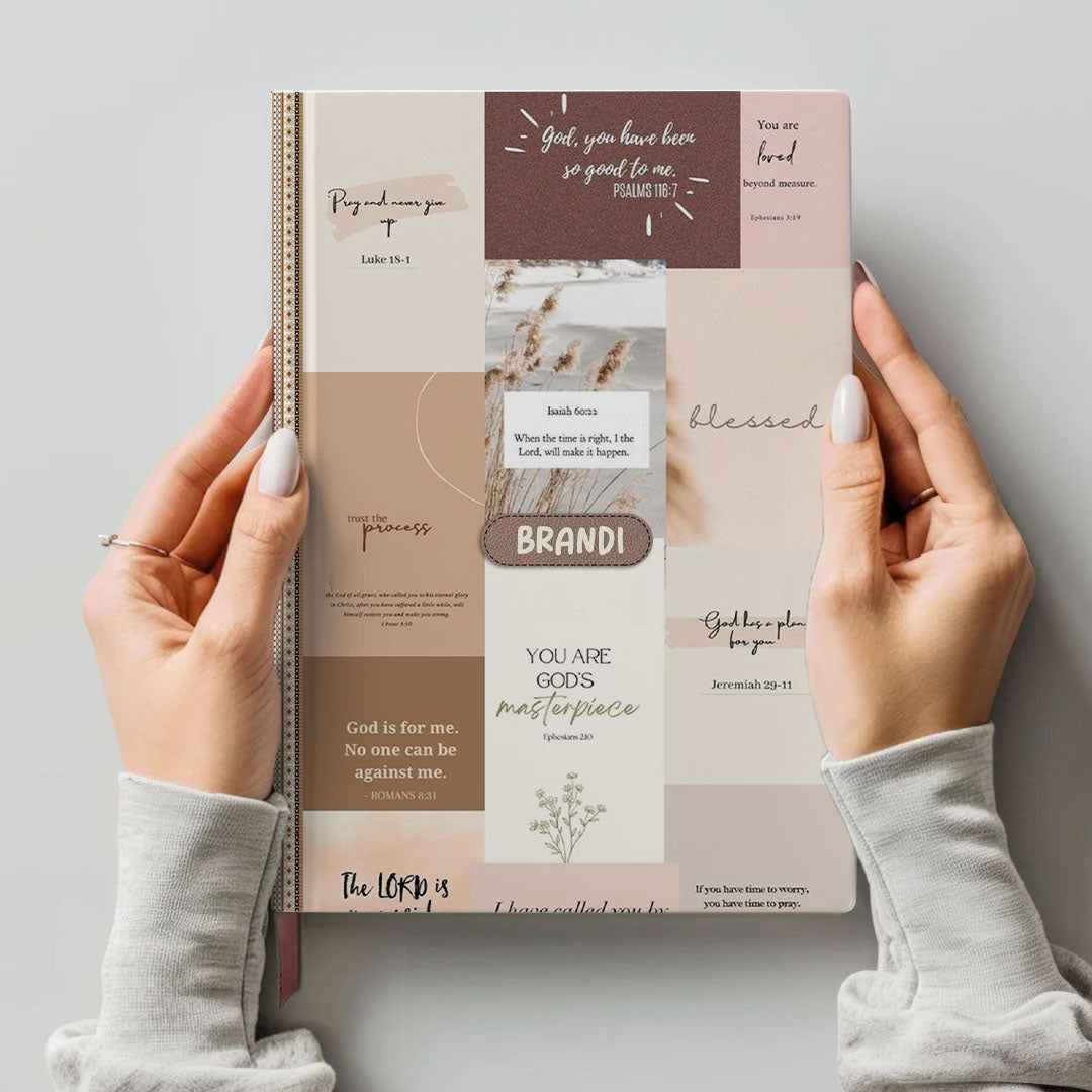 Celebrate your faith in the most personal way with our Personalized Leather Notebook – a one-of-a-kind Christian journal where each letter of your name is paired with a meaningful Bible verse, based on the Alphabet of God’s Word.