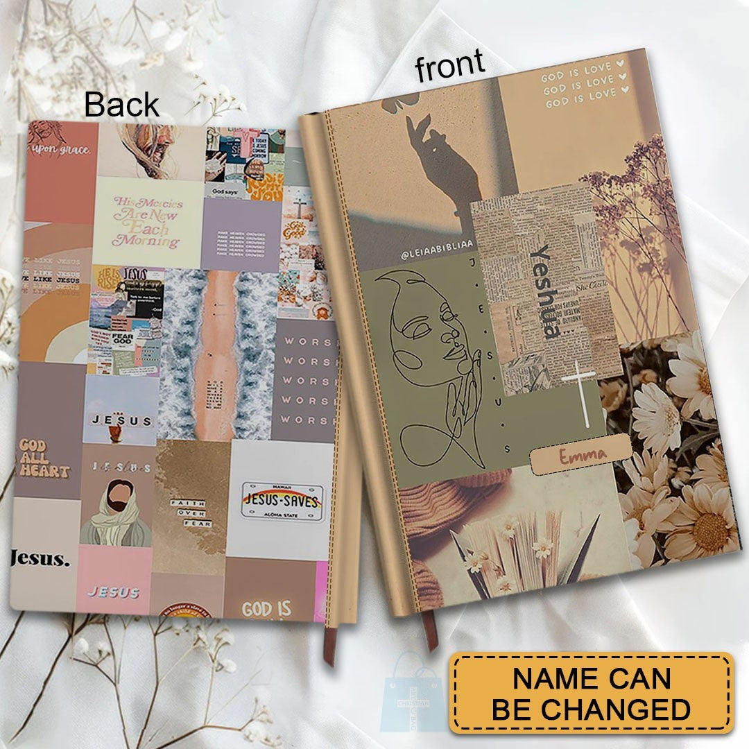 Personalized Leather Notebook Bible – Custom Name Christian Journal with Inspirational Scripture Verses