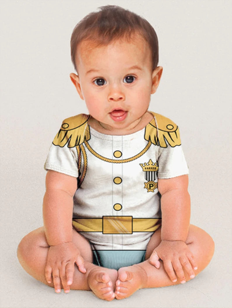 Prince Charming Baby Bodysuit, Personalized Prince Charming Birthday Outfit, White Jacket Prince Baby Outfit, Baby Prince Charming Shirt